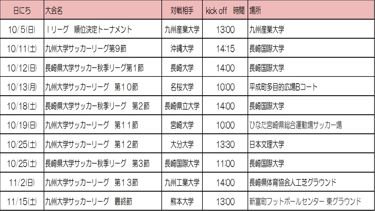 【サッカー部】10月11月リーグ戦スケジュールのお知らせ