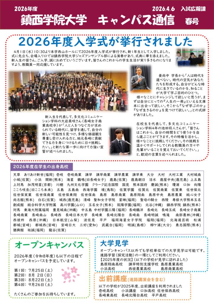 2026年度4月入学予定の皆様へ(入学式等のご案内)3/30更新
