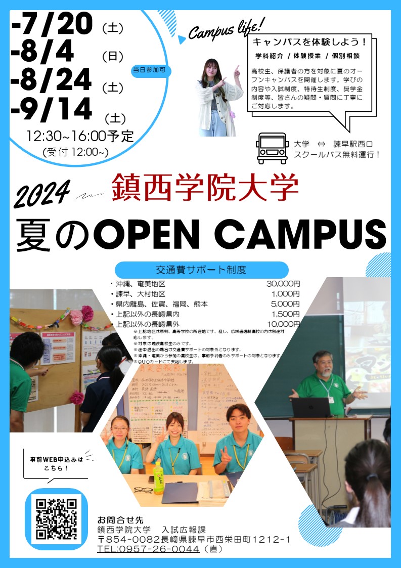 夏のオープンキャンパスの日時が確定しましたのでお知らせいたします。