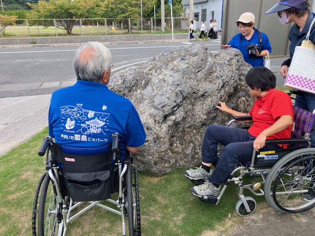 本研究は、令和3年度に実施した「おおいた姫島ジオパークのユニバーサルデザイン化の推進に関する調査研究」を踏まえて、別府・大分バリアフリーツアーセンター様と連携し、コースの課題や改善点の検証とソフト面での対応向上を目指したジオパーク観光ガイドの研修会を企画実施しました。