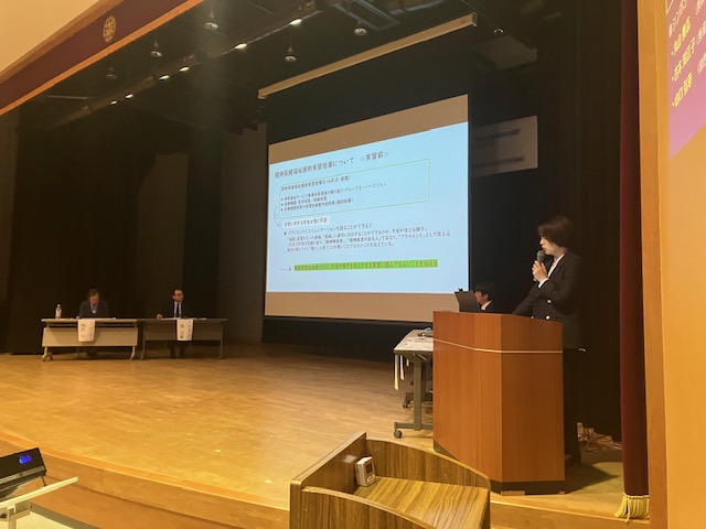 第2セッションでは、「精神保健福祉士養成課程におけるソーシャルワーク実習教育の成果と課題」について、長崎国際大学の丸山貴志先生、長崎純心大学の吉本知江子先生、本学の山口弘幸先生より各大学の養成教育の取り組みや成果、展望や課題についての報告がなされました。